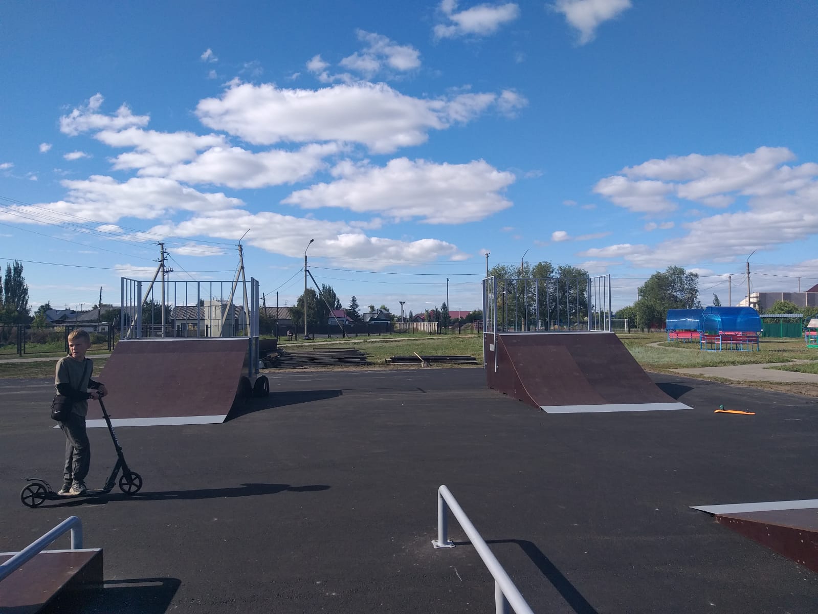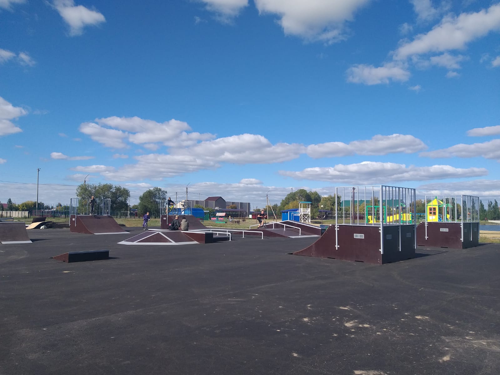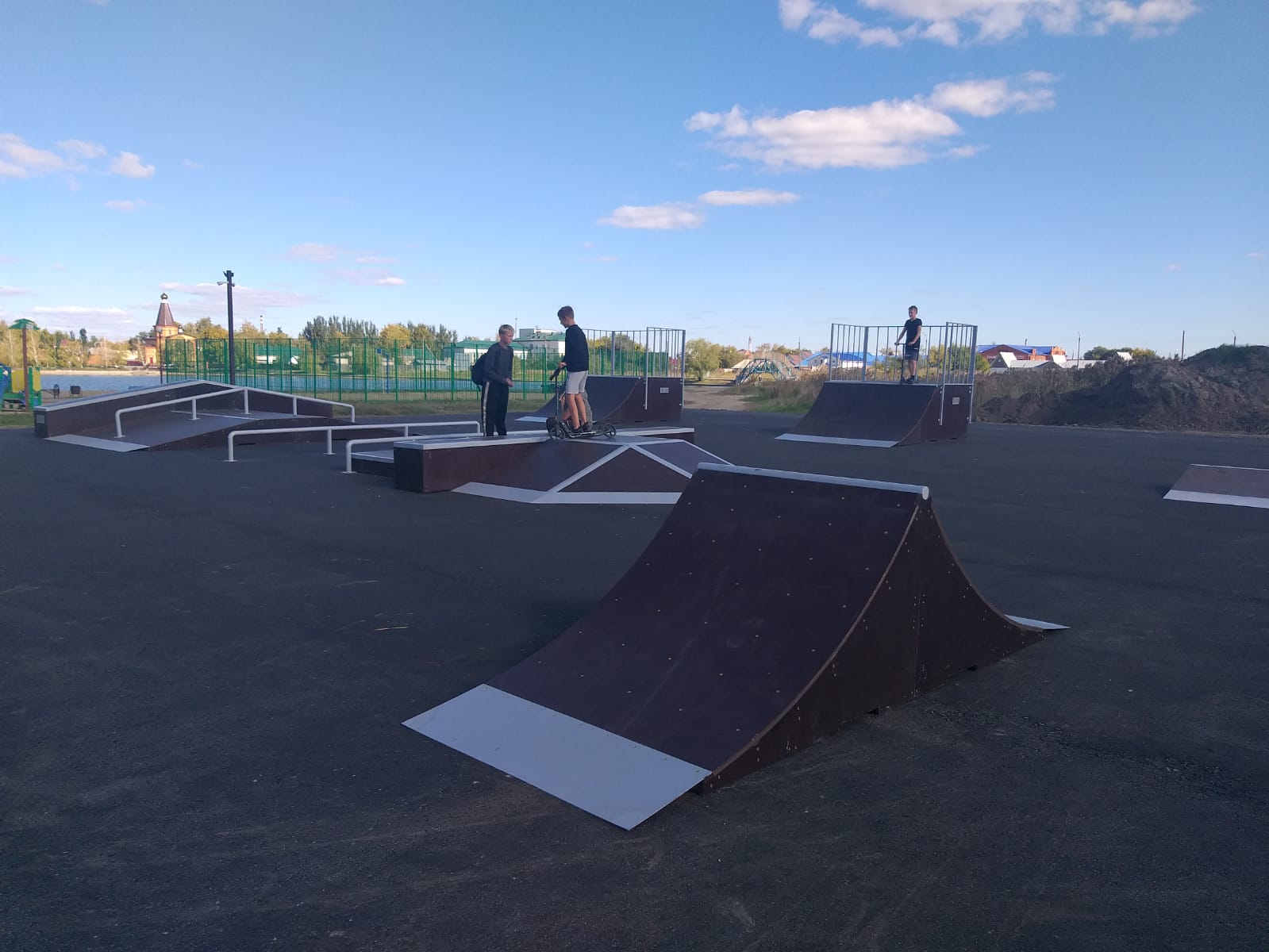 Для юных спортсменов установлены специальные элементы — рампы, кикеры и фанбоксы, позволяющие осваивать разнообразные трюки.