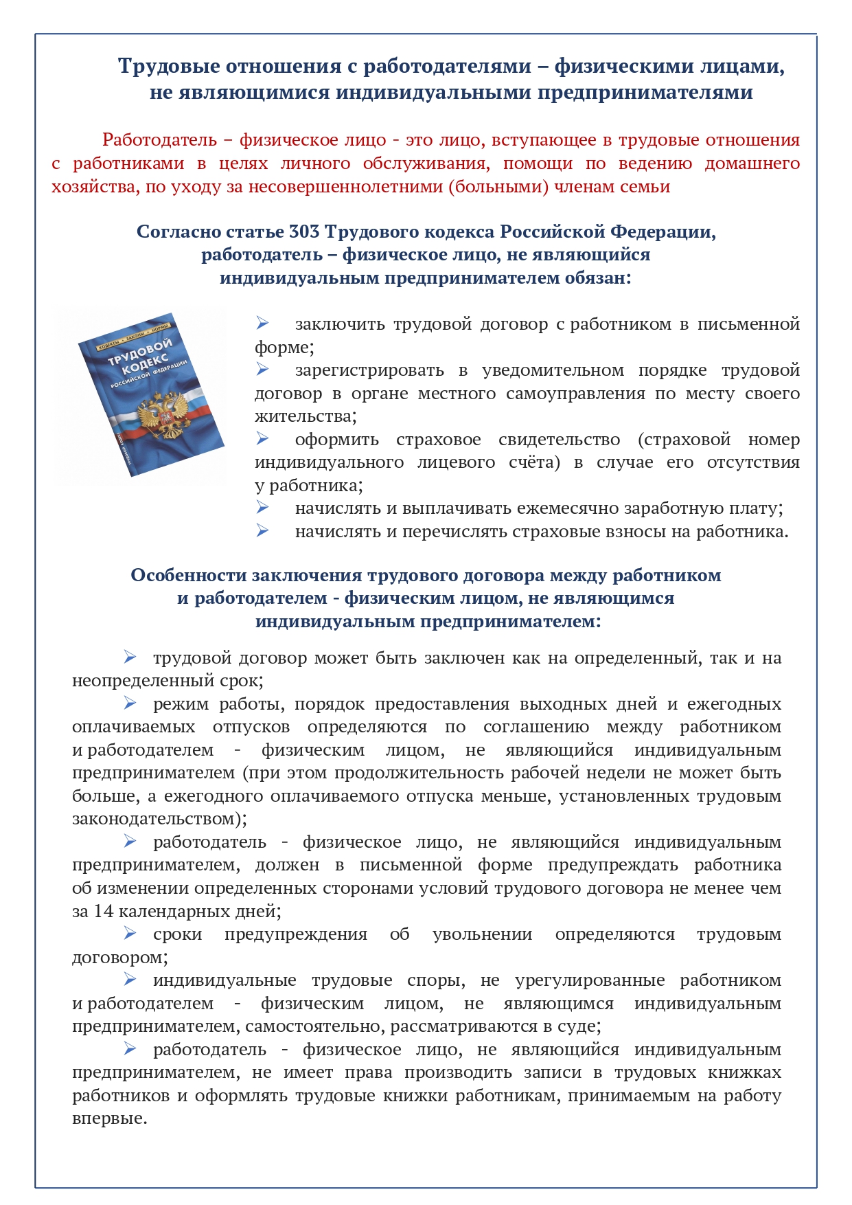 Трудовые отношения с работодателями – физическими лицами, не являющимися индивидуальными предпринимателями