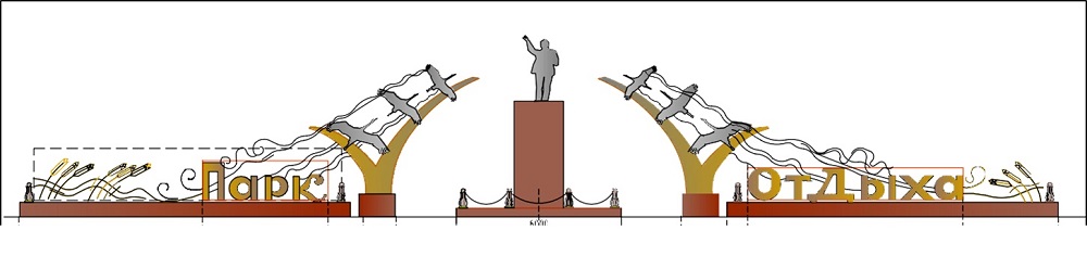 Проект предусматривает обновление входной композиции парка со стороны центральной площади посёлка (за памятником В. И. Ленина). Вместо существующих подиумов с буквами «Слава труду» и символами «5-конечная звезда» и «Серп и молот» будет обустроено новое художественное оформление.